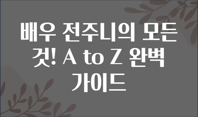 배우 전주니의 모든 것! A to Z 완벽 가이드 🎬✨