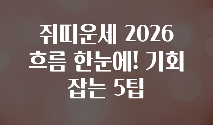 2026년은 많은 이들에게 새로운 시작과 전환의 해가 될 예정입니다. 특히 12간지 중 ‘쥐띠’에게는 어떤 변화와 기회가 기다리고 있을지 궁금한 분들이 많죠? 여러분이 올해를 성공적으로 이끌고, 숨겨진 행운을 잘 포착할 수 있도록 쥐띠 운세의 흐름과 5가지 실전 꿀팁을 친절하고 알기 쉽게 안내해 드릴게요! 🌟